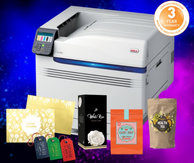 Auch wenn Farben fantastisch sind, kann ein weißer oder klarer Toner das Sahnehäubchen sein. Wir stellen vor: Die OKI Pro9500-Serie an 5-Farbproduktionsdruckern
